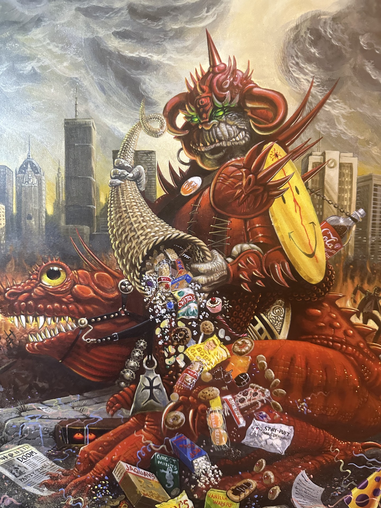Artist Jennell Jaquays. Acrylic on mounted paper. Cover artwork for the Ghostbusters International RPG adventure, ApoKERMIS Now!